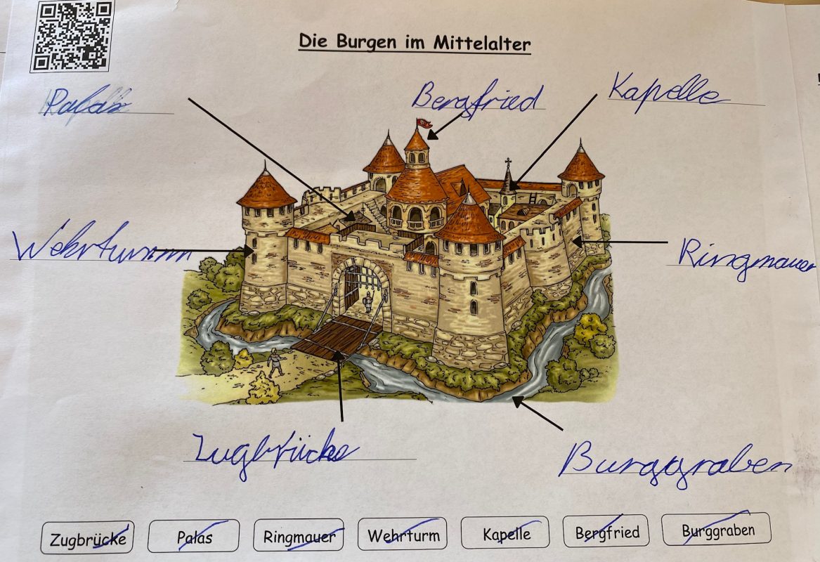 Eine mittelalterliche Burg war nicht nur ein Zuhause, sondern auch ein sicherer Rückzugsort. Im Zentrum lag die Kernburg mit dem Bergfried – einem hohen Turm zur Verteidigung. Rundherum gab es oft eine Ringmauer, Gräben und manchmal sogar eine zweite, äußere Mauer. Innerhalb der Burg befanden sich Wohnräume, eine Kapelle, Stallungen und Vorratskammern. Alles war so gebaut, dass man sich im Notfall gut verteidigen konnte und möglichst lange überleben konnte.