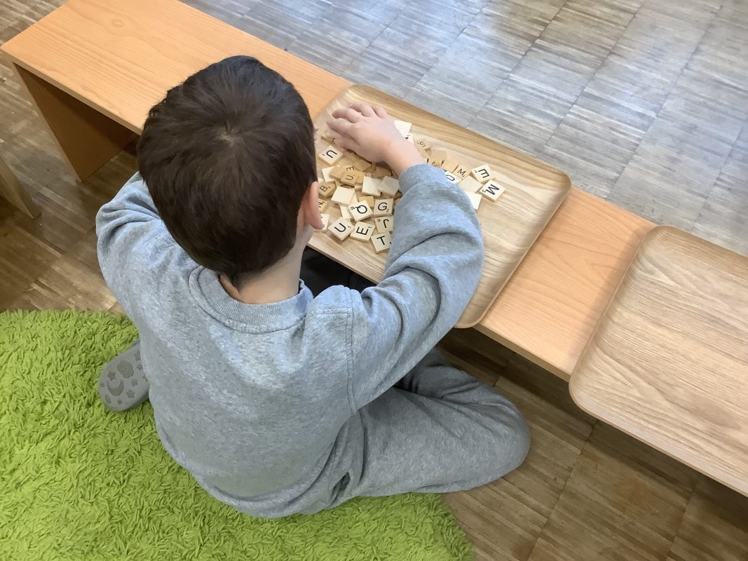 Ich hatte in einer Box lauter Buchstaben (von einem alten Scrabble-Spiel). Das Kind hat die Buchstaben ausgeschüttet, umgedreht (Feinmotorik wird gleich mitgeschult 😉) und dann alle I nebendran gelegt, die es finden konnte. Diese Station konnten immer zwei Kinder machen.