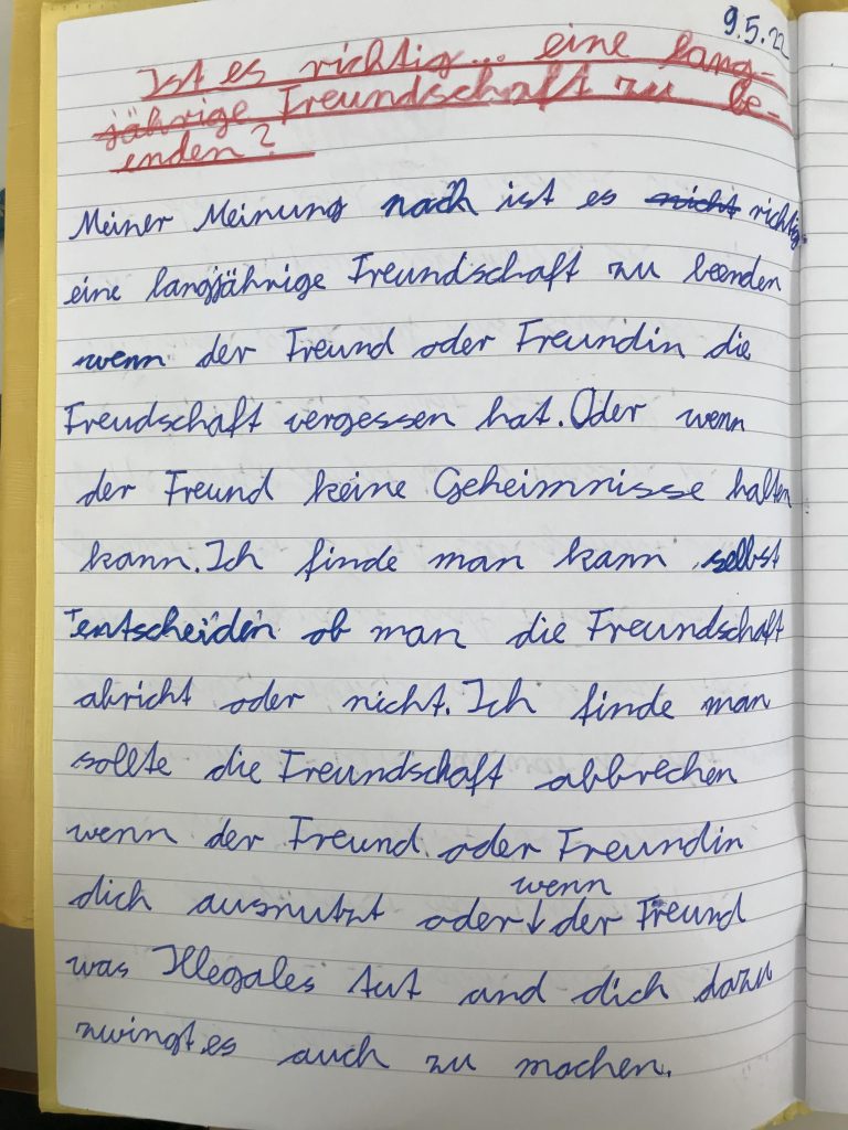 Ergänzend zur freien Schreibzeit, wo die SuS (Schülerinnen und Schüler) keine Vorgaben zu einem Thema bekommen, stelle ich ab und zu gerne Impulsfragen, die die Kinder schriftlich beantworten und die aus ihrer Lebenswelt stammen.