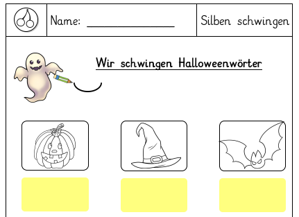 Außerdem sind zwei Arbeitsblätter speziell mit Wörtern zum Thema Herbst und Halloween dabei.